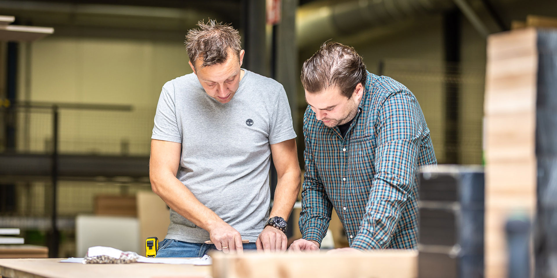 Onze meubels worden gemaakt met de mooiste materialen als ingrediënt, gemixt met een heleboel passie en precisie. Dát is wat onze maatwerk interieurs zo uniek maakt. Eens zien hoe dat er aan toe gaat? Neem een kijkje achter de schermen.
