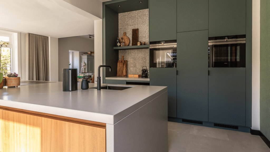 De interieurtrends 2026 gaan verder dan alleen kleur. We zien een trend naar houtlooks waar je de nerf in ziet, een materiaal wat niet helemaal perfect lijkt, maar daardoor juist uniek wordt. Bij GK werken we al jaren met verschillende afwerkingen die deze uitstraling kunnen realiseren, van licht eiken tot warme notentinten.