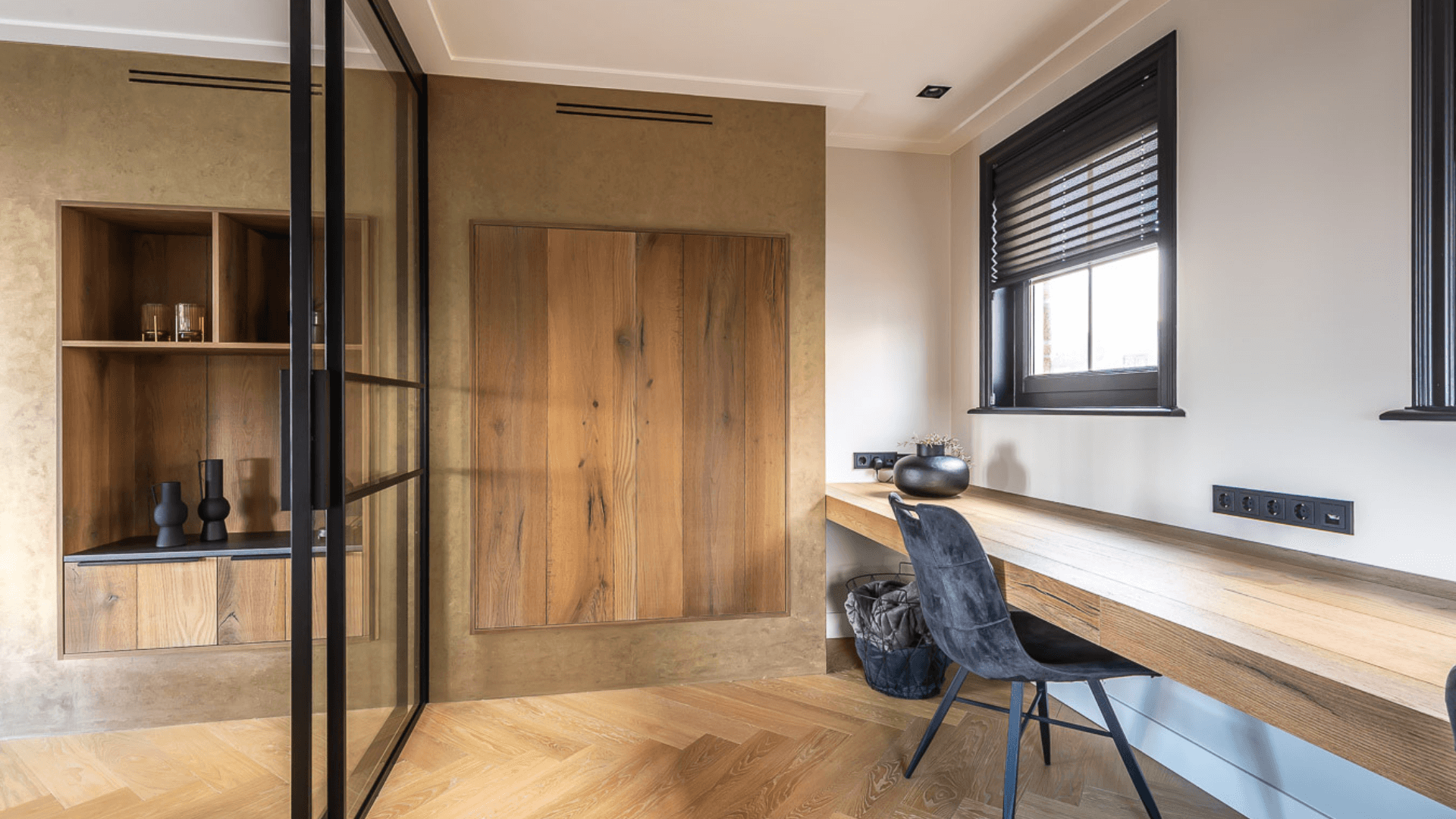 Soms heb je van die huizen waar je binnenstapt en je handen als interieurbouwer beginnen te jeuken. Dit waanzinnige huis in Katwijk was er zo een! De woning barst van de ruimte wat enerzijds heel veel mogelijkheden met zich meebrengt, maar anderzijds was het ook de uitdagingen om de verschillende ruimtes op elkaar aan te laten sluiten. Met een van onze vaste architecten gingen we aan de slag en creëerden we een garderobekast, riante woonkeuken, werkkamer, badkamer, tv-meubel en wandkast. Elk met hun eigen unieke stijl en tóch een geheel.