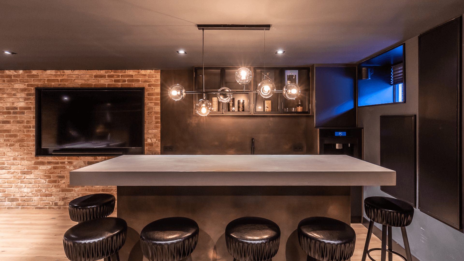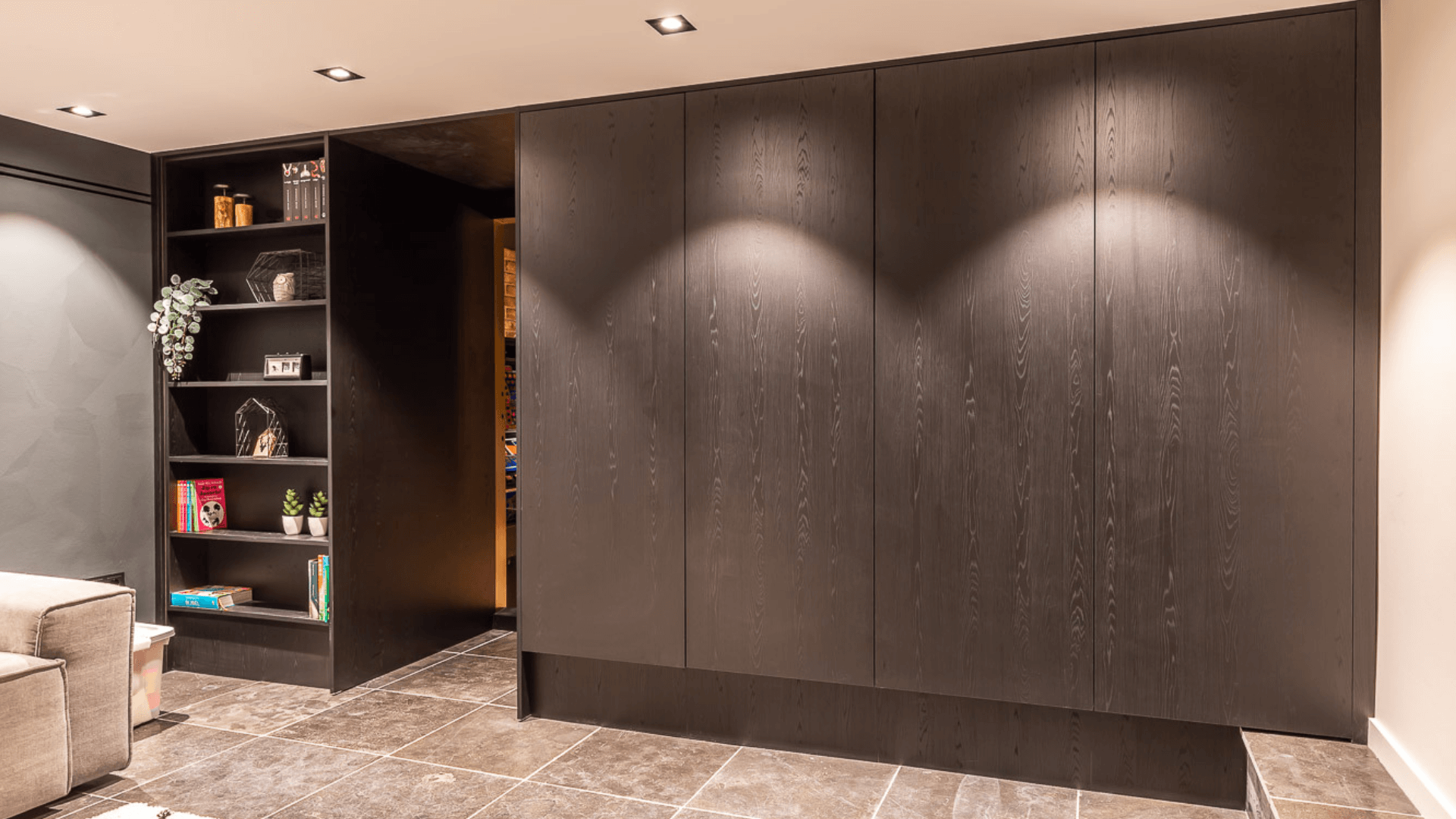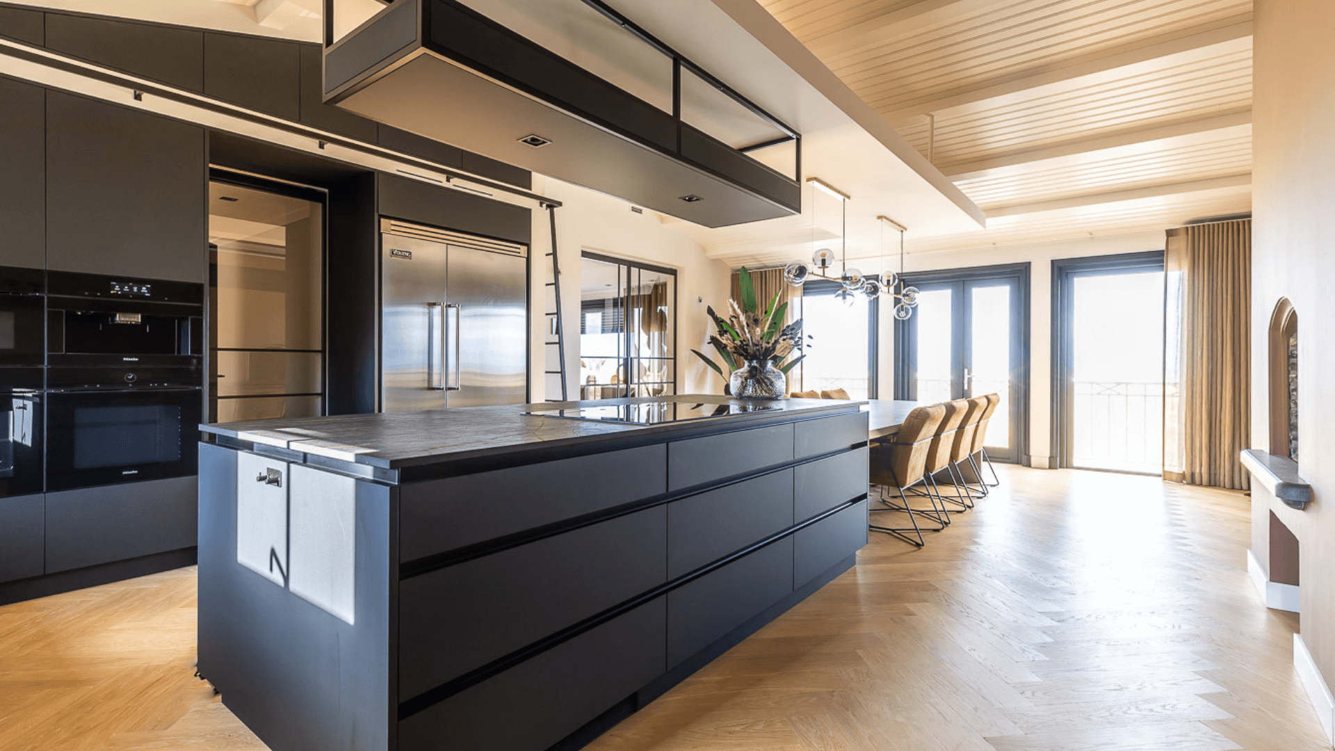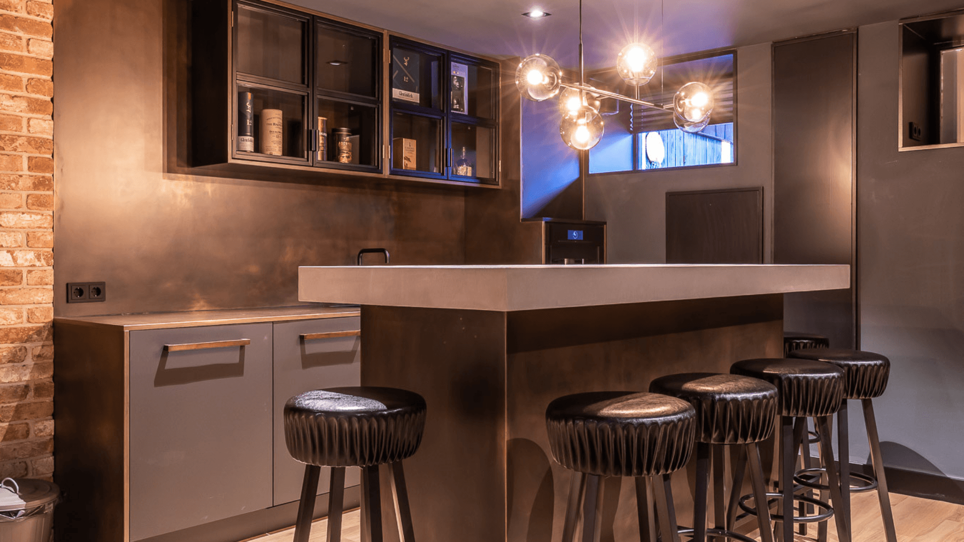 Een woonkeuken, badkamer, woonkamer en mancave hebben allen hun eigen functie en mogen daardoor ook een eigen uitstraling hebben. Waar de mancave en woonkeuken bruisende plekken zijn waar geleefd wordt, is een badkamer juist een plek waar je omarmt wordt door rust. Het maatwerk interieur in de badkamer werd daarom licht en luchtig, waarbij er voor de mancave en woonkeuken gekozen werd voor donkere materialen en een industriële look. Door op subtiele wijze te spelen met afwerkingen sluiten de ruimtes nu alsnog heel goed op elkaar aan!