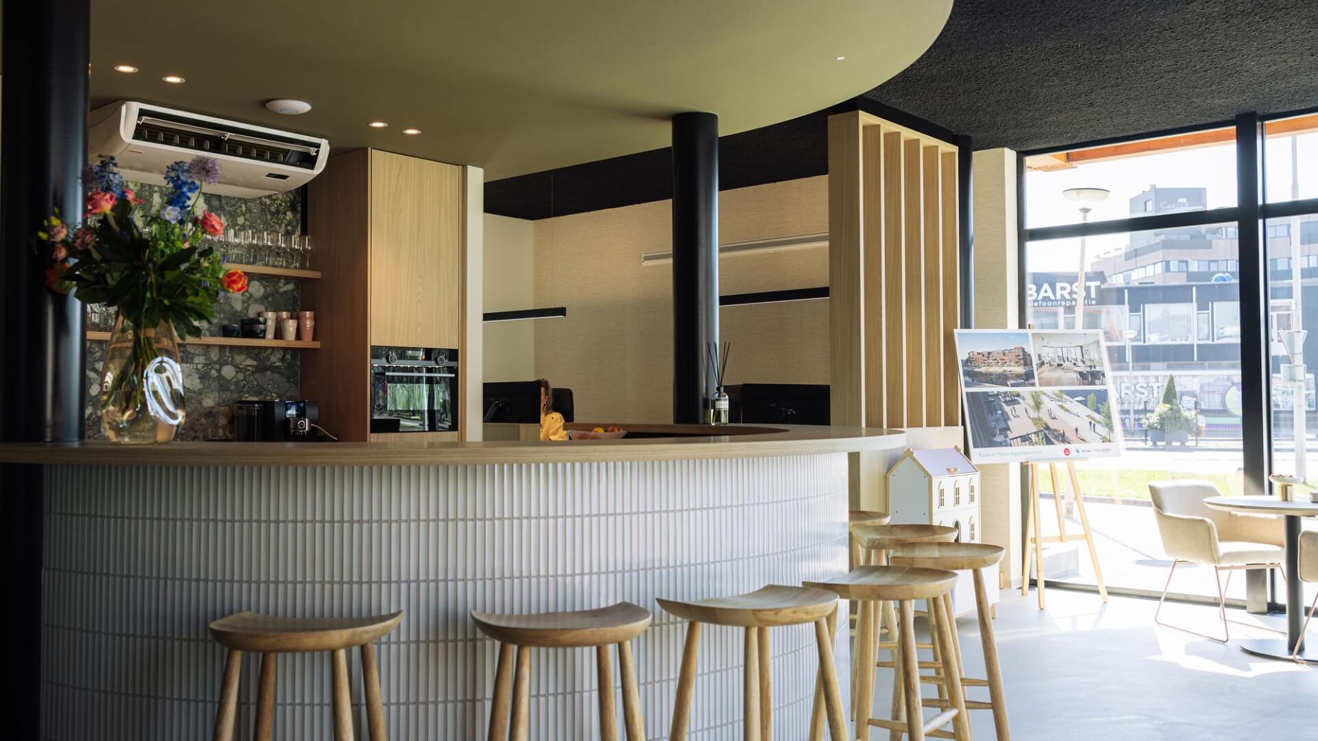 Samen met C&R Makelaars doken we in de details. Van de houtsoort tot de vorm van de bar: alles moest kloppen met wie zij zijn als makelaarskantoor. En dát is wat we het liefste doen: meedenken, ontwerpen en bouwen aan interieurs die echt iets uitstralen en een wow-factor hebben. Geen standaard kantoorpand, maar een plek die werkt en indruk maakt zodra je binnenstapt.