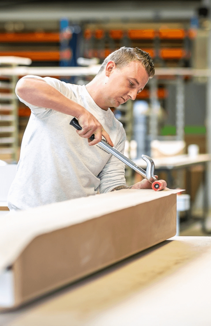 Van het allerkleinste kastje tot aan de meest groots opgezette keukens en wandmeubels: alles wordt door onze vakmensen gemaakt in onze eigen werkplaats.