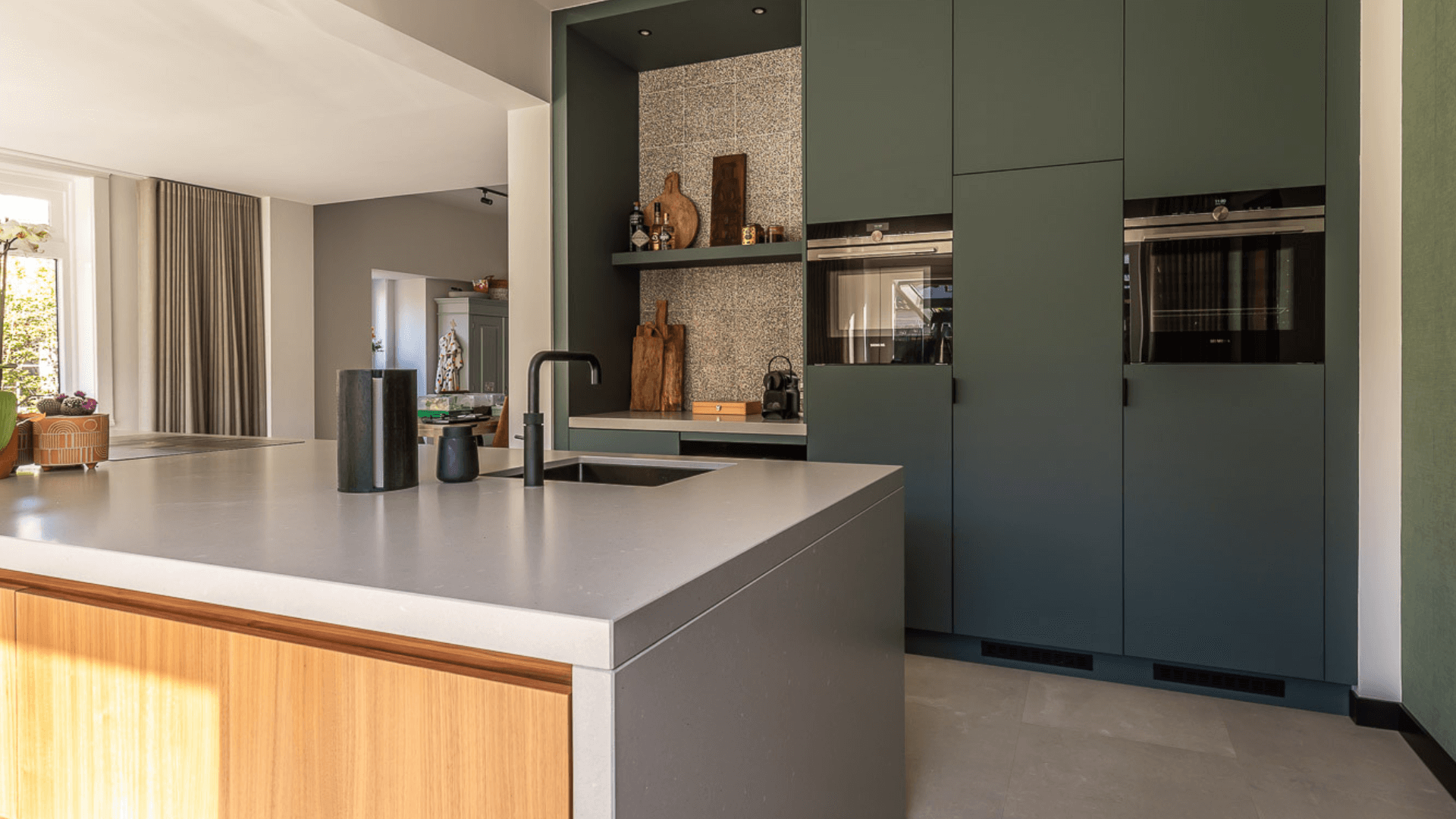 Voor een jong gezin in Roosendaal realiseerden we een woonkeuken die méér is dan een plek om te koken. Dit is de plek waar de kids hun huiswerk maken aan het kookeiland, waar je ’s ochtends in de hectiek snel een boterham smeert, en waar je ’s avonds moeiteloos overgaat op borrelen met vrienden. Alles klopt hier: de warme uitstraling, het slimme ontwerp en de ruimte om als gezin te leven.